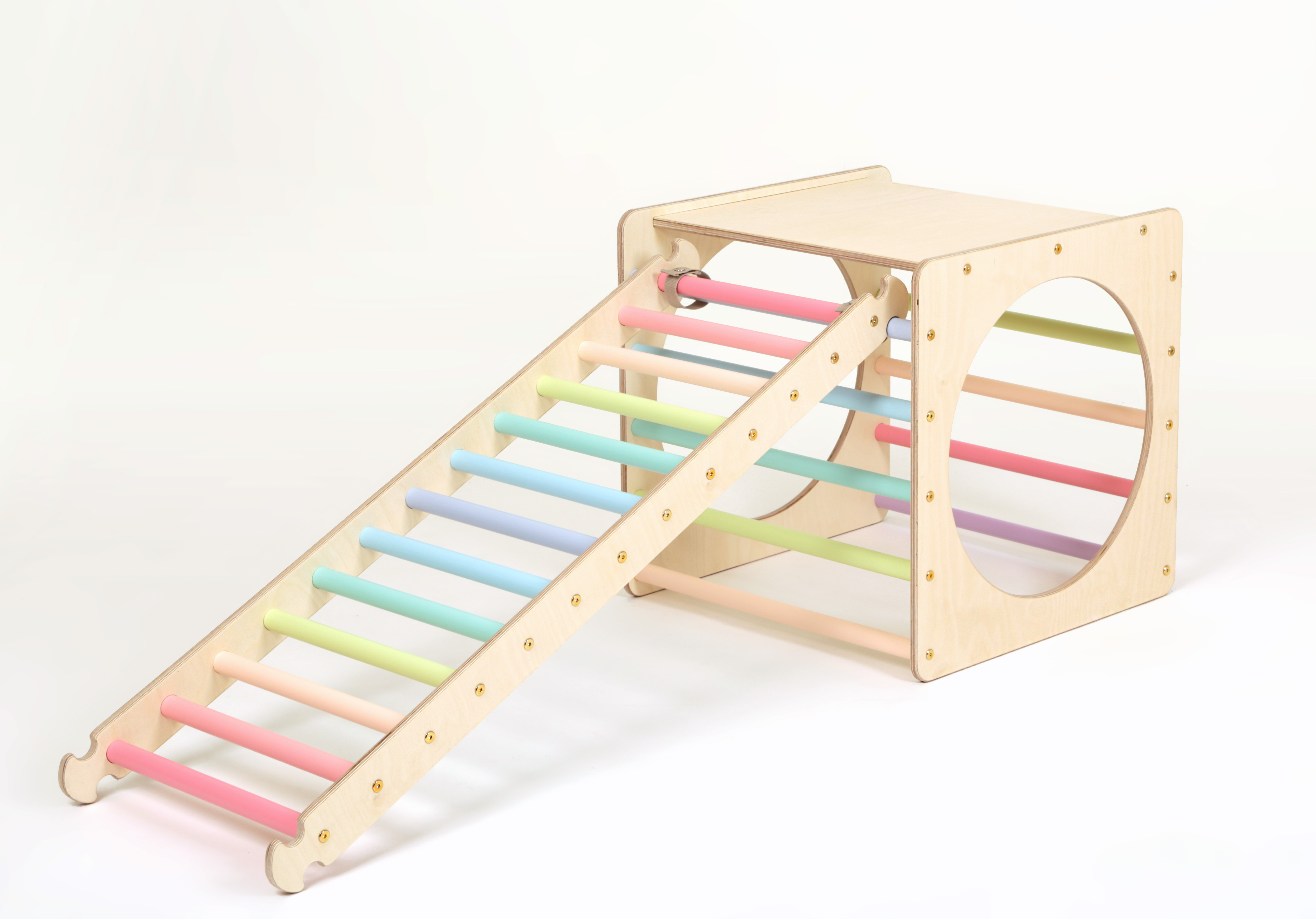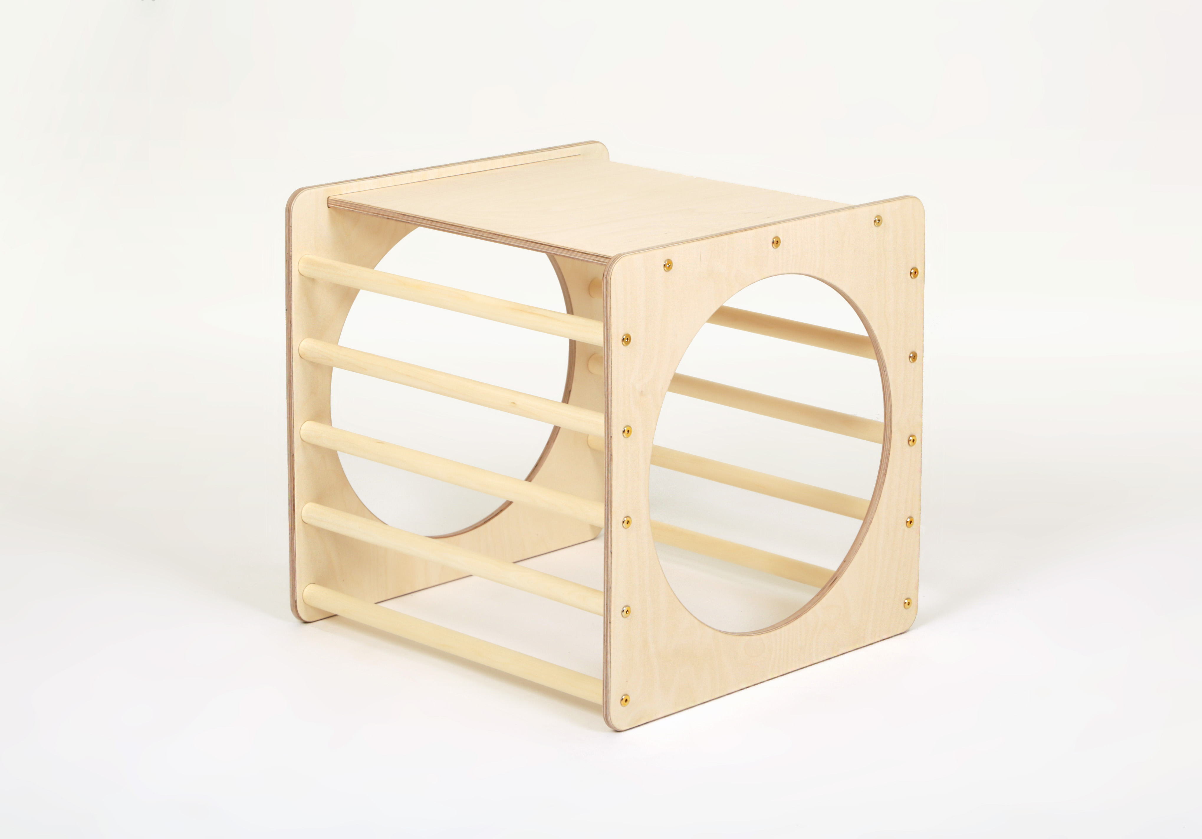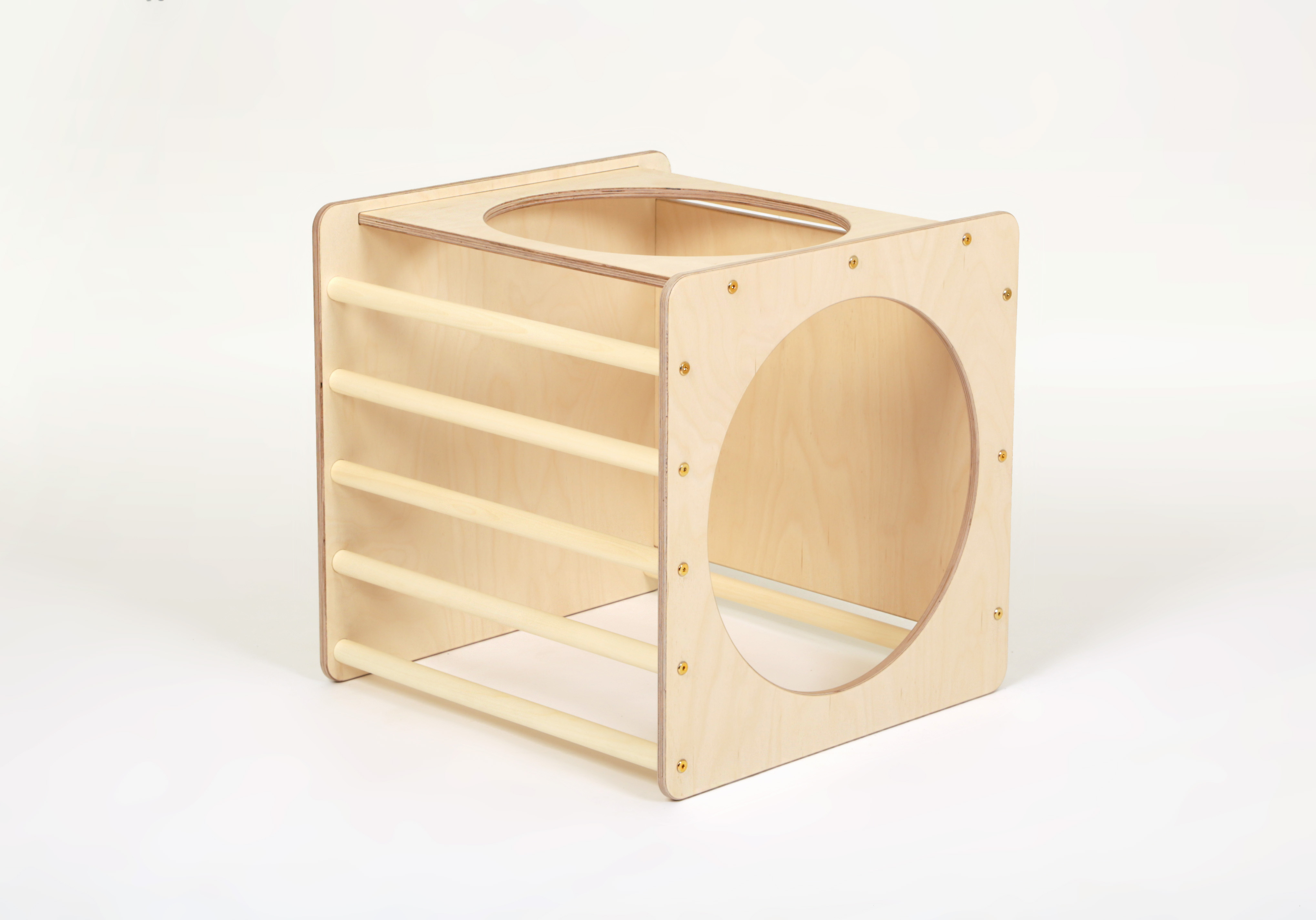 Explorer Cube: 1 open sides + 1 closed side + 2 circle sides + 2 rung sidesCube: L 58 x W 58 x H 58 cm