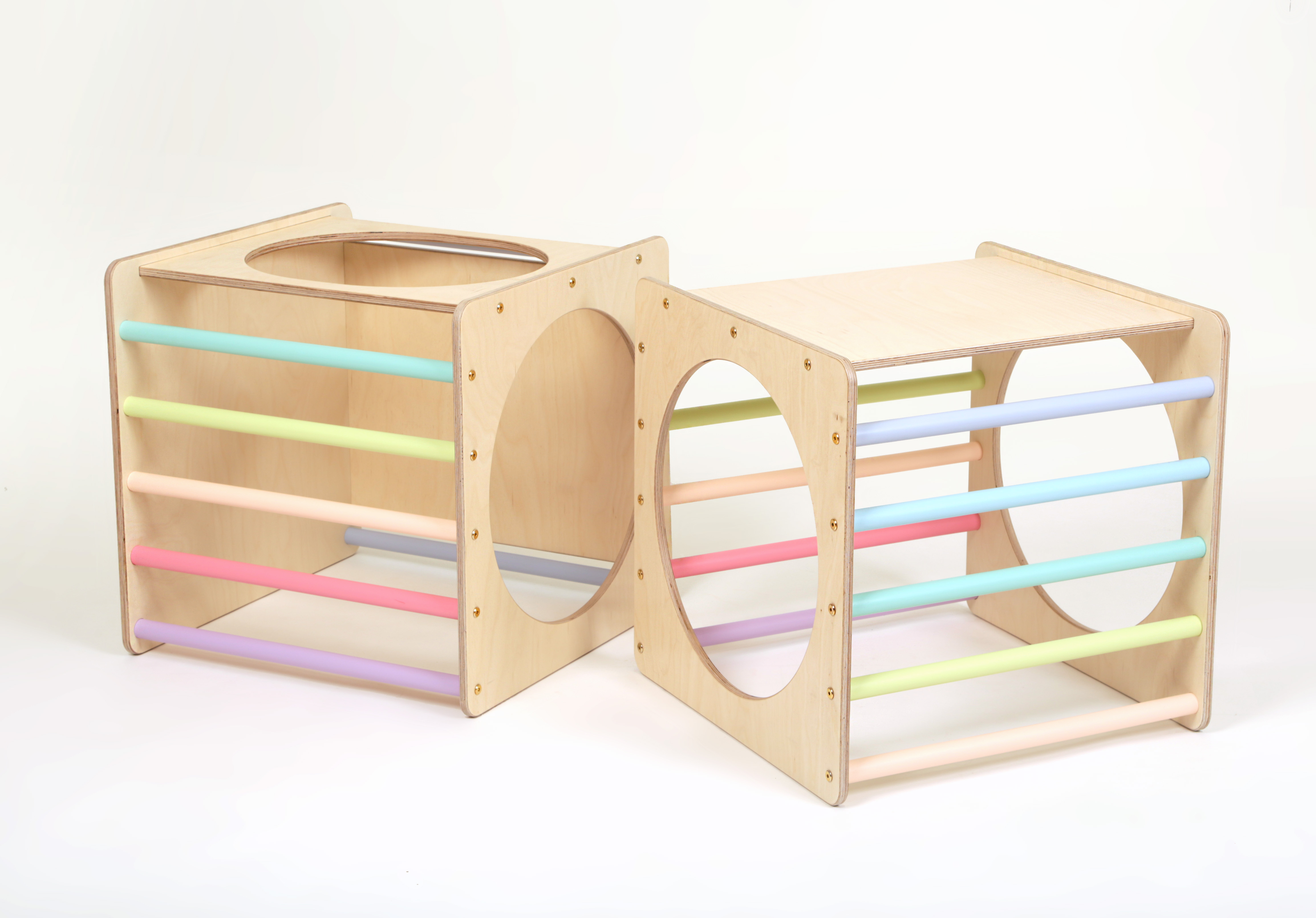 適合 6 個月大或以上兒童玩。可訓練一般動作技能 (gross motor skills) , 包括平衡,協調,敏捷,力量,反應時間甚至速度。深度感知和空間意識 (Sense of depth perception and spatial awareness),從而刺激小朋友感官發展,以幫助前庭系統發展。而攀爬將幫助他們增強力量和耐力。孩子提高運動能力的同時更可獲得無限樂趣!此外小孩可用搖籃發揮無限創意,想出不同玩法,激發創造力。即使在家中,家長也可讓孩子們玩搖籃,以安全的方式釋放孩子們無窮的精力。 每個款式有3種顏色可供選擇:Natural ,Pastel,Rainbow – 可跟家中擺設配搭,美觀實用! KATEHAA CLIMBING CUBE SET 系列與大多數製造商的爬行三角形 (Pickler triangle) 和攀爬架 (Ramp / Ladder) 兼容,讓家中的爬行玩具變得更完善、多樣化。*註:KATEHAA CLIMBING CUBE SET 系列跟KATEHAA WALDORF ROCKER系列不能兼容。