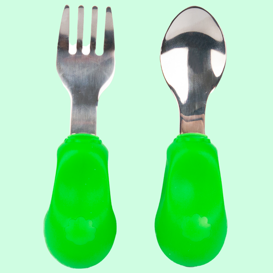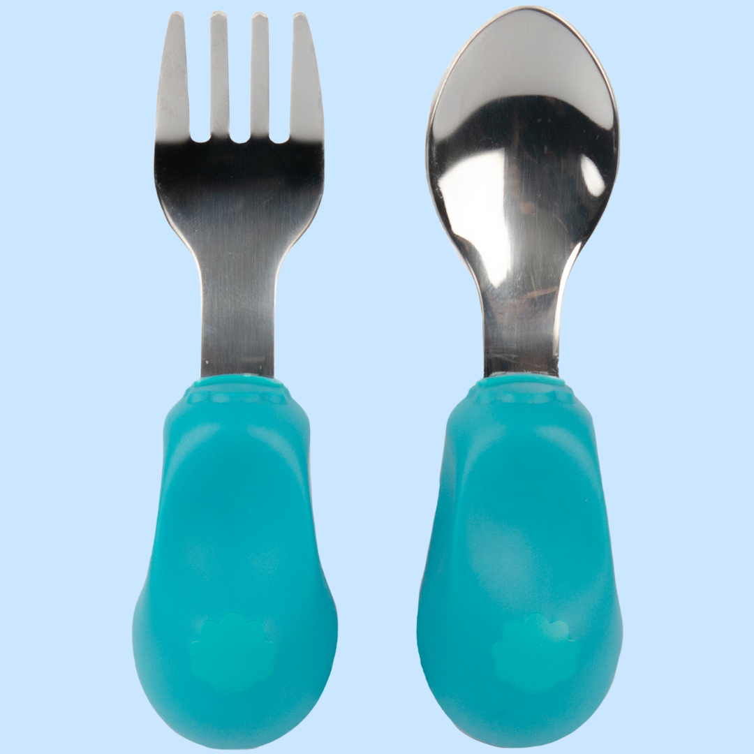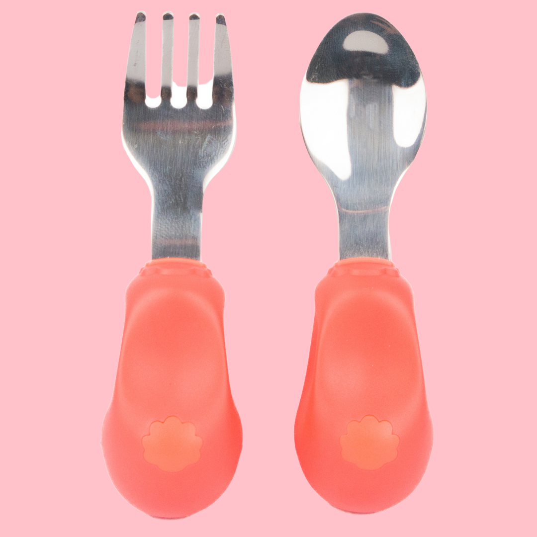 👍尺寸小巧,手柄較粗身 , 觸感柔軟,讓寶寶舒適、輕易抓握,第一次使用餐具時更容易掌握 技巧,從而發展他們的手眼協調能力。